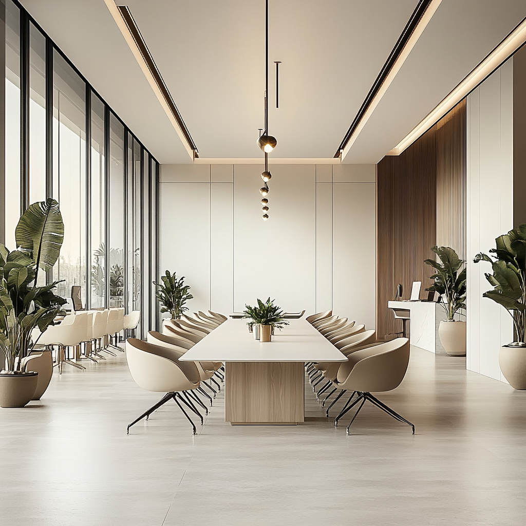 A contemporary business centre that embodies the principle of “less, but better.” The design embraces clean lines, neutral palettes, and open-plan spaces while integrating passive design strategies and renewable technologies. The aesthetic speaks of quiet elegance and professional clarity, fostering focus and functionality.